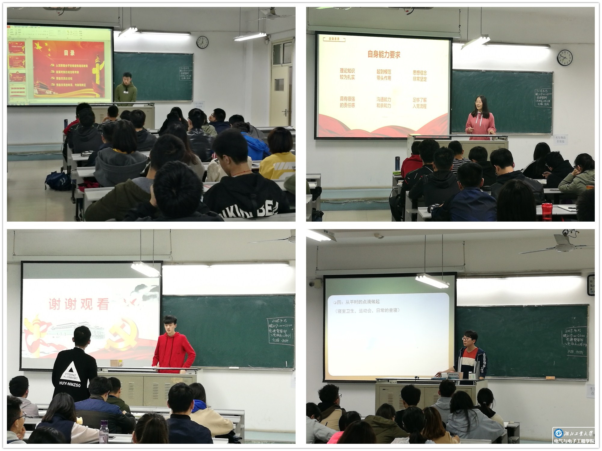会议在二教三个教室同时开始,通信支部副书记对入党联系人工作提出了宝贵的建议和经验,她希望各位入党联系人深入到同学的生活中,不局限于一种方式,并且正确引导他们的入党动机,用心对待班上的每一位同学。来自二支部张静怡则着重强调了入党联系人自身素质和交流沟通的重要性,以自己为榜样,带动班上入党积极分子的积极性。台下所有入党联系人都认真仔细地听着,并奋笔疾书做好笔记。随后,邵宏和李旭旸均用PPT展示了支部的入党流程和入党提交材料的规范格式,就如何开展支部工作提出了建设性意见。在会议的最后,几位入党联系人提出了自己在工作中遇到的问题和困惑,在场的嘉宾都做出了很好的解答。至此,本次入党联系人培训大会圆满结束。