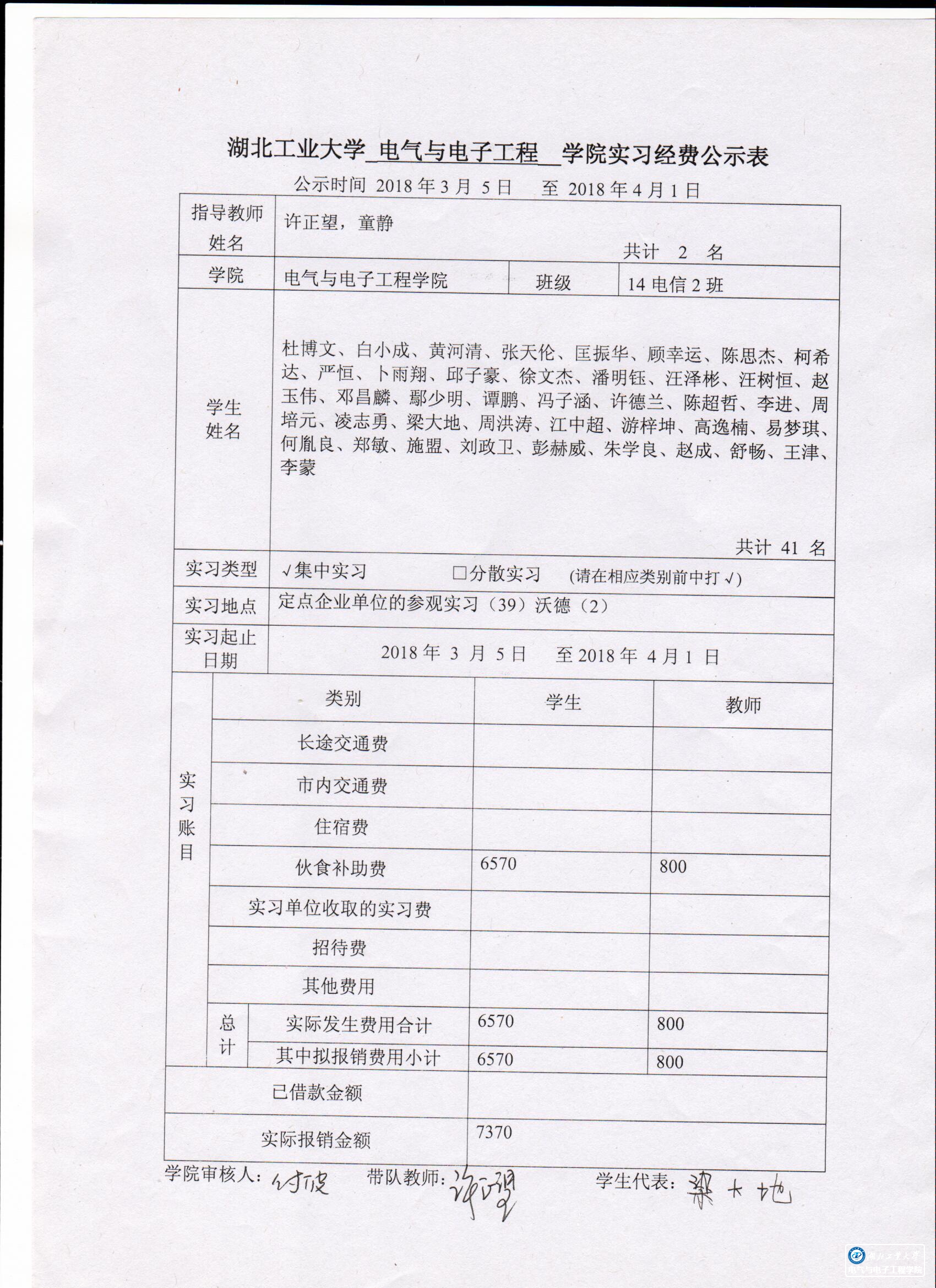 附件:《湖北工业大学电气学院实习经费公示表》2018年3月6日