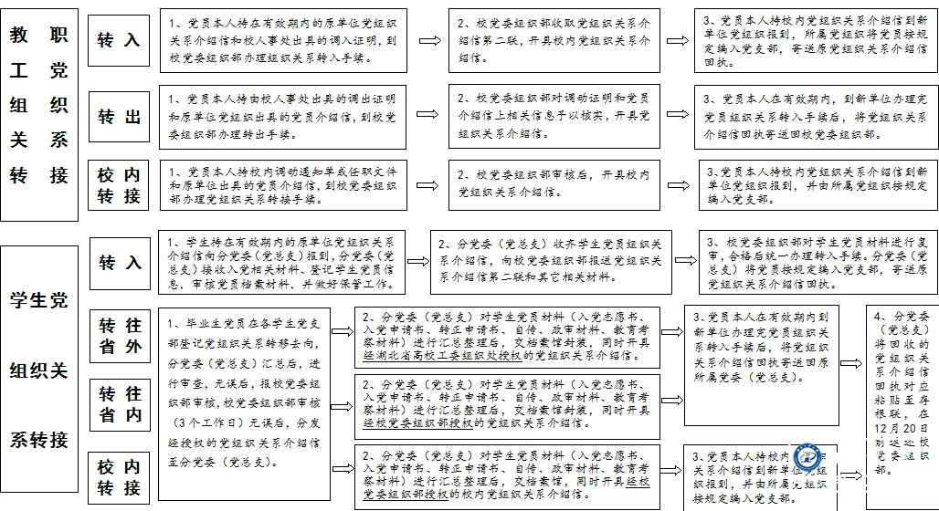 注:由于转学、休学、参军等其它原因,需转出党组织关系的学生,由各分党委(党总支)开具党员介绍信,到校党委组织部统一办理。